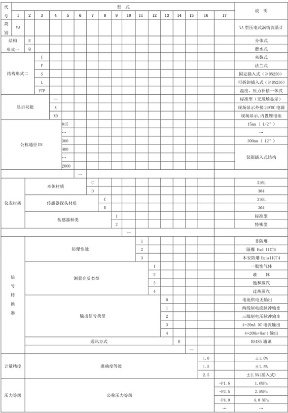▮渦街流量計產品型號標記