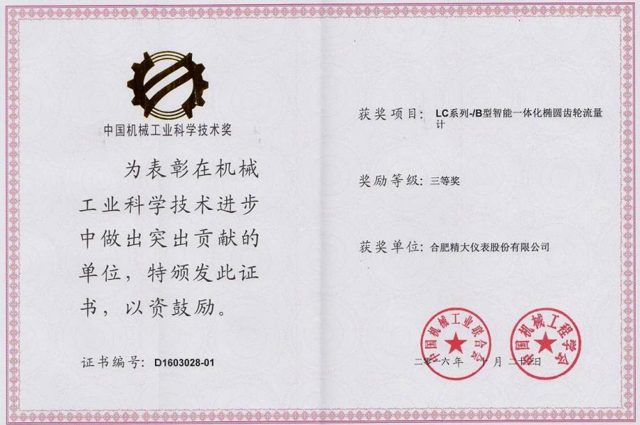 中國(guó)機(jī)械工業(yè)科學(xué)技術(shù)獎(jiǎng)